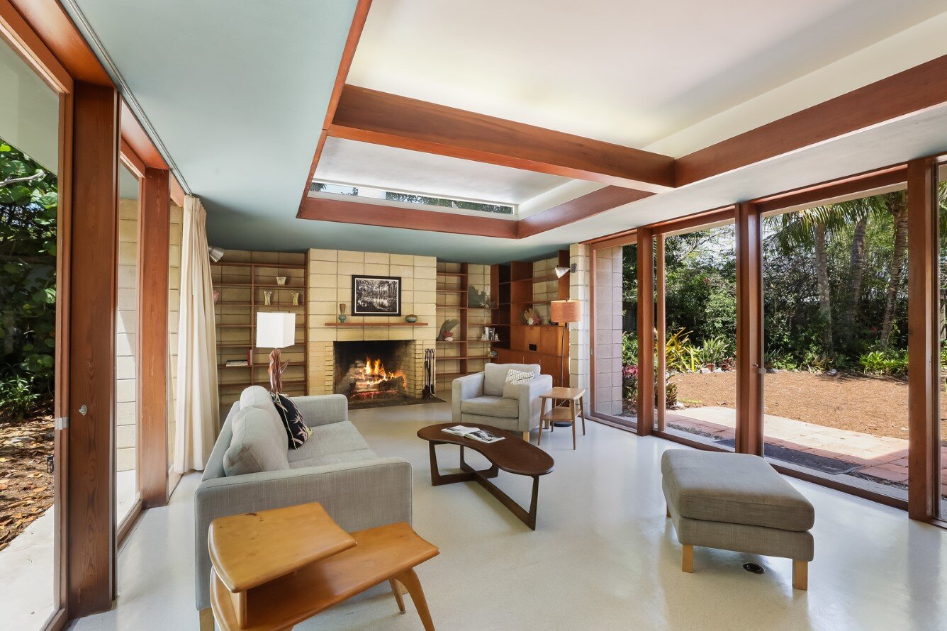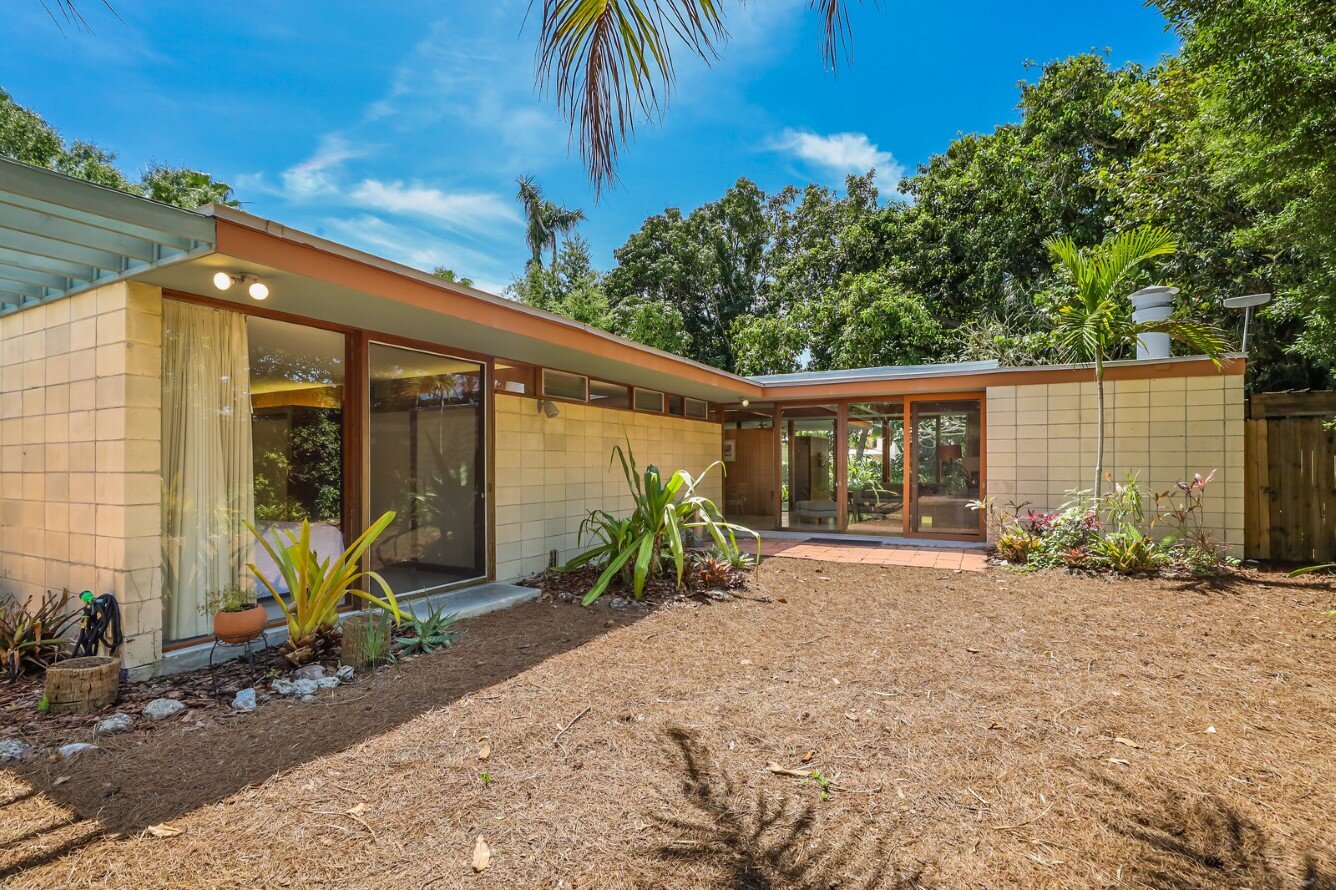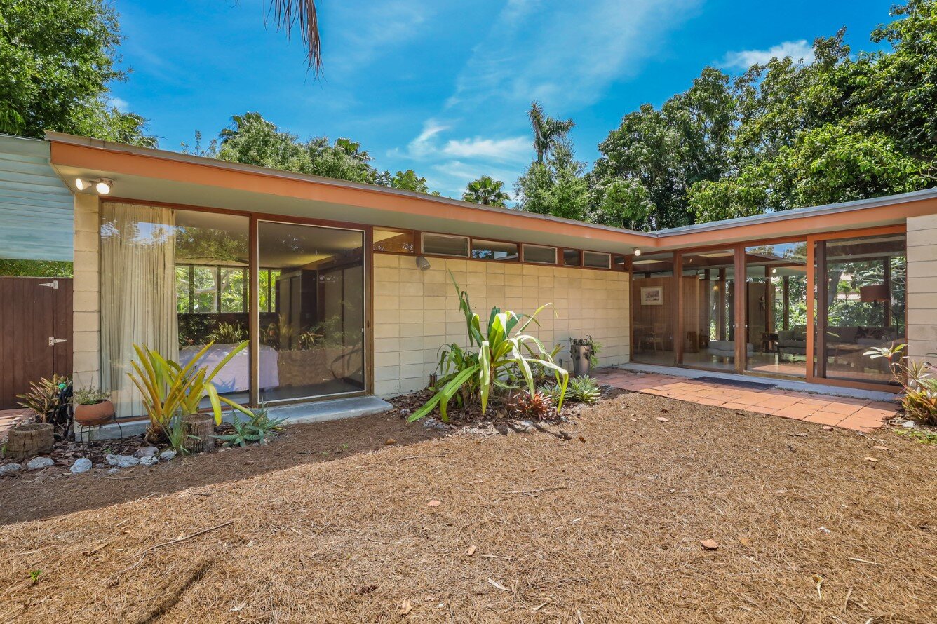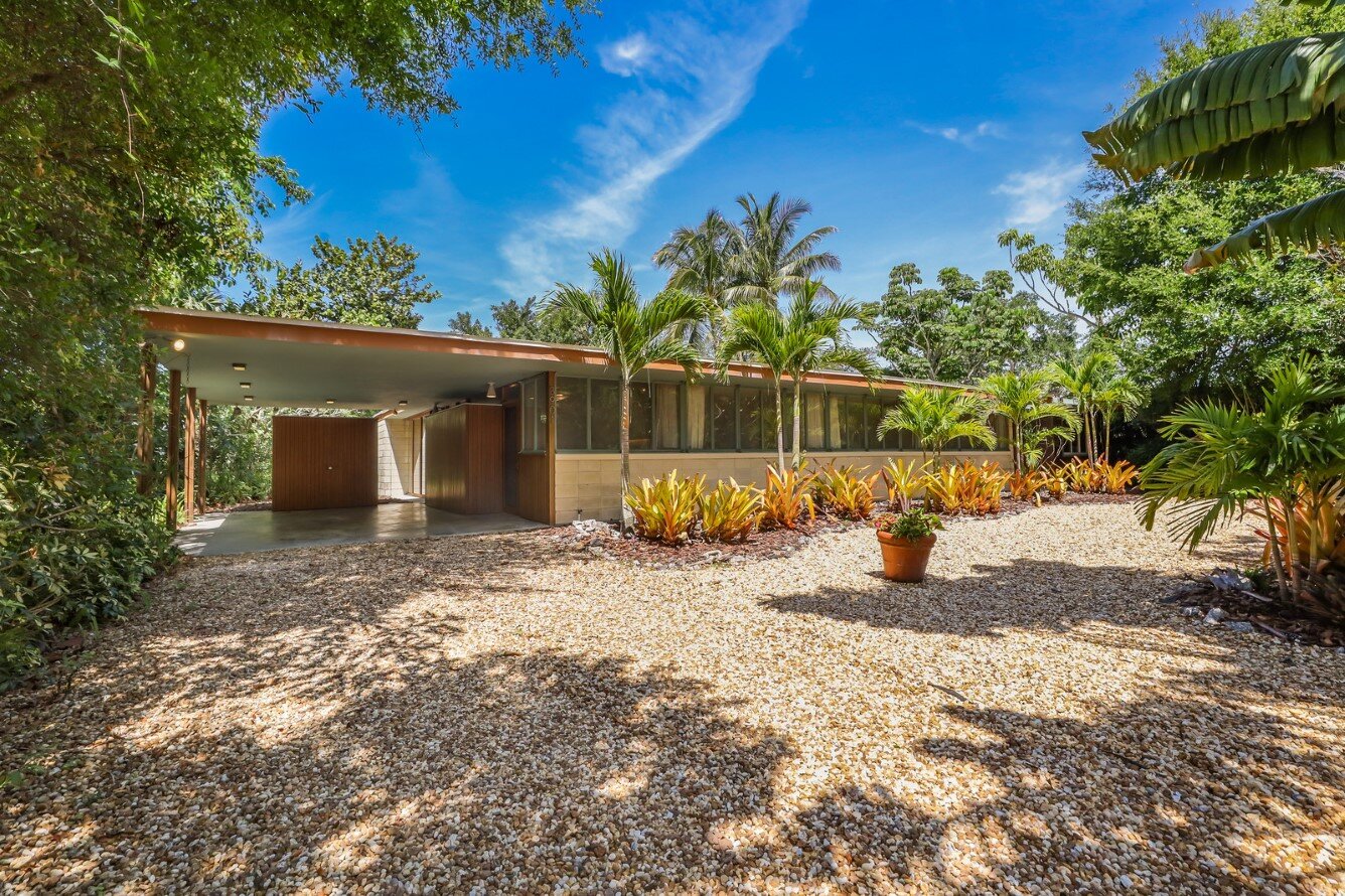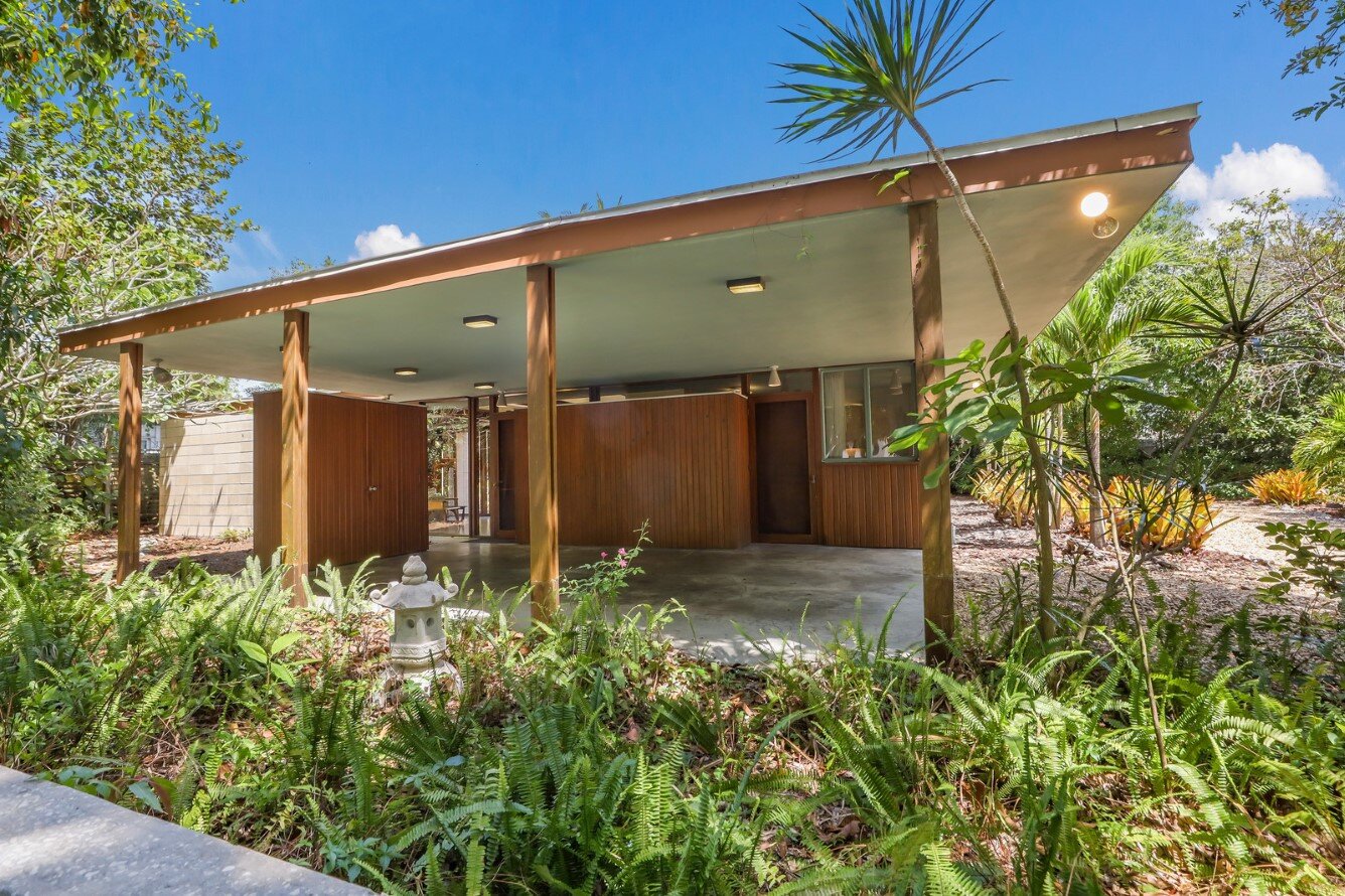The design brings together native and modern materials – heart cypress, lime block, plate glass – into a disciplined composition reflecting the principles of the Sarasota School of Architecture.