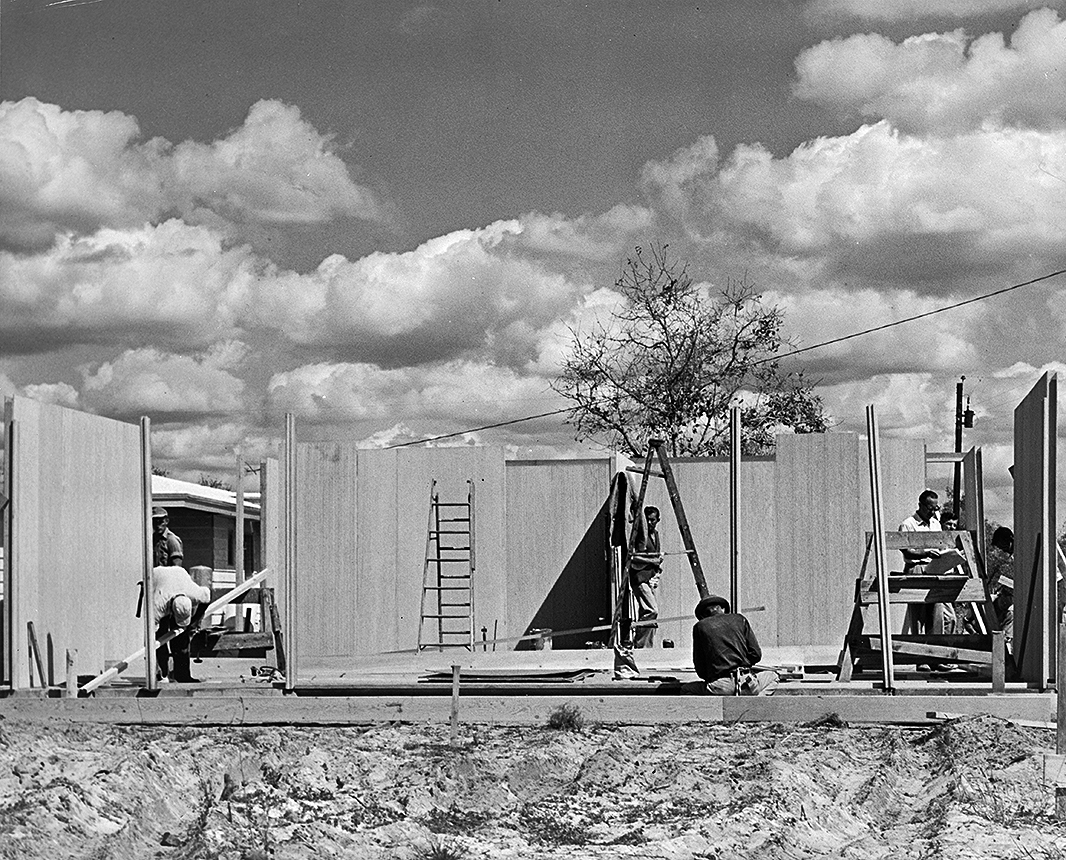 The Wilson Residence was completely built out of out of prefabricated paper honeycomb panels, which had been invented by the Airline industry for making lightweight bulkheads.