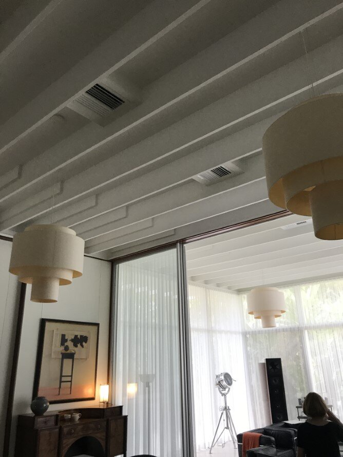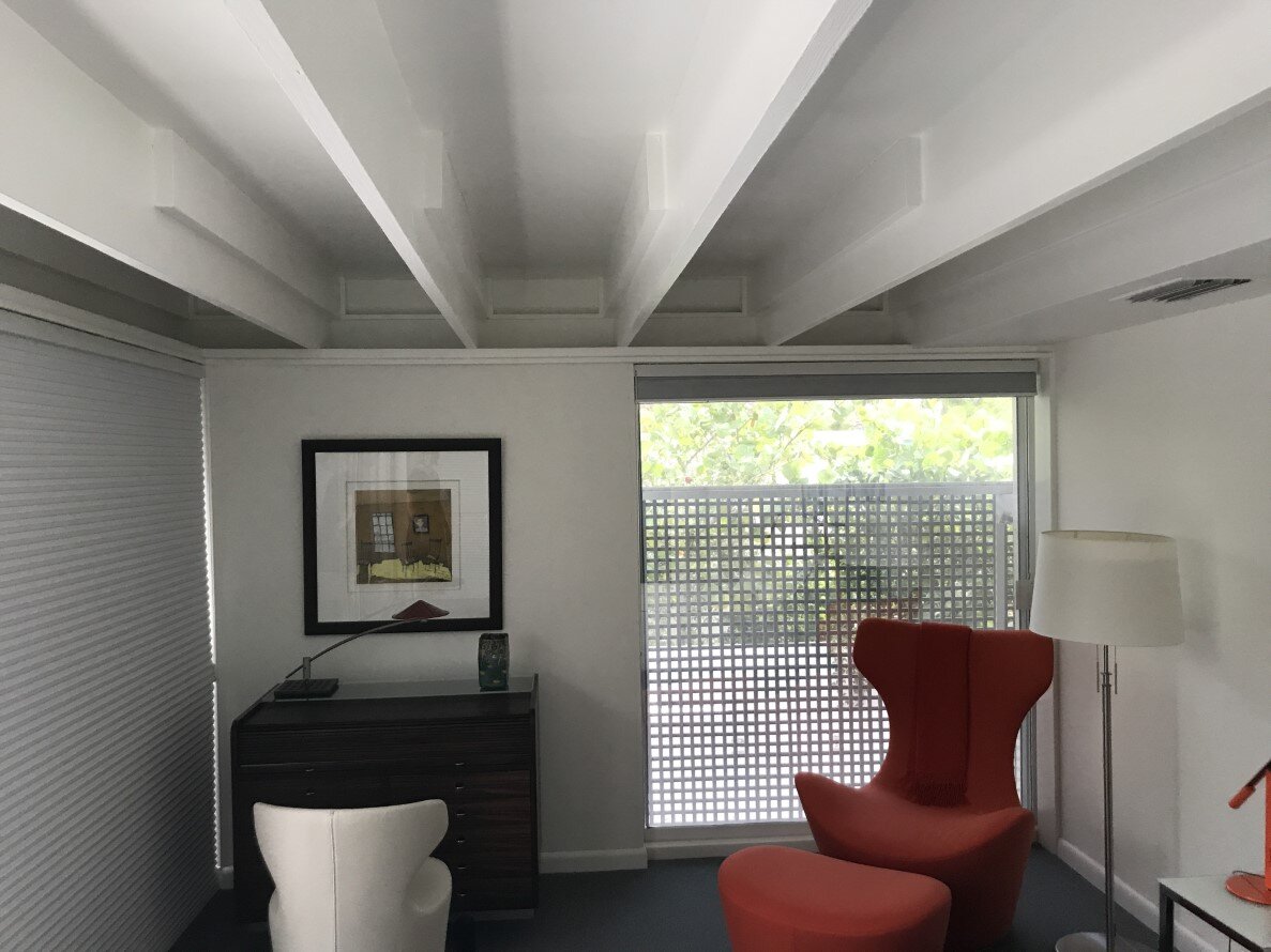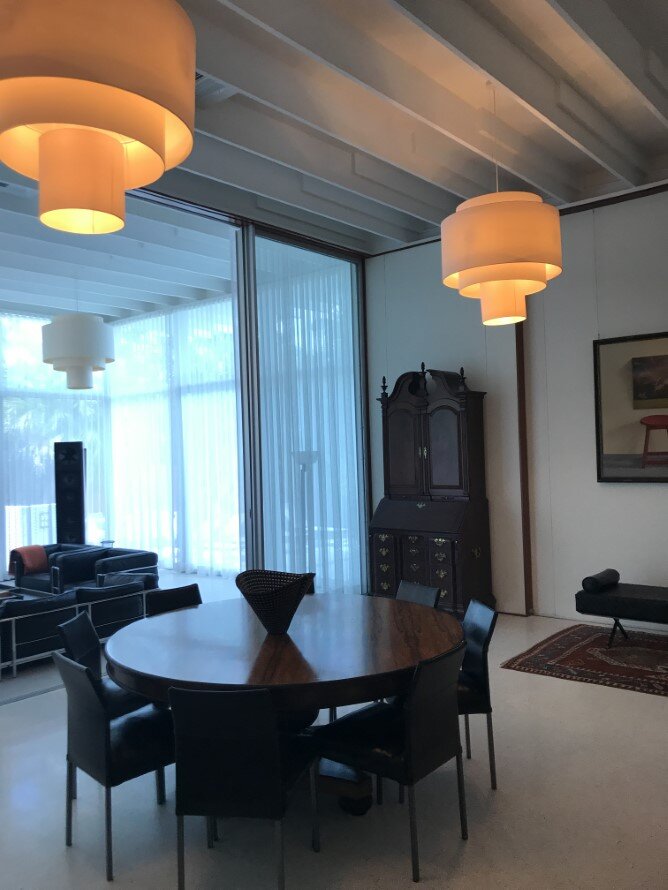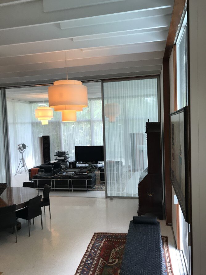 In 2006 a two-story addition is added to the eastern elevation of the home, replacing an earlier addition similar in size and location by architect Jack West. The architect for the 2006 addition is John Quinn. According to a Historic Designation Report written in 2019, “the addition is compatible with the materials and scale of the original structure but can be clearly differentiated by the difference in architectural details including a reduced sense of horizontality and smaller overall mass. The structural system of the addition matches the original in form, though the roof overhand and rafter tails are much shorter. This further minimizes the visual impact of the addition in comparison to the original.”