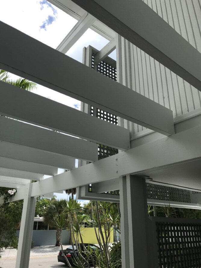 The general contractor for the residence is James Stroud, who runs a construction firm in Sarasota. He builds several other Rudolph projects such as the 1952 Sanderling Beach Club, and the 1953 Davis Residence. Prior to opening his own firm, James Stroud worked for Jack Twitchell’s firm Associated Builders.