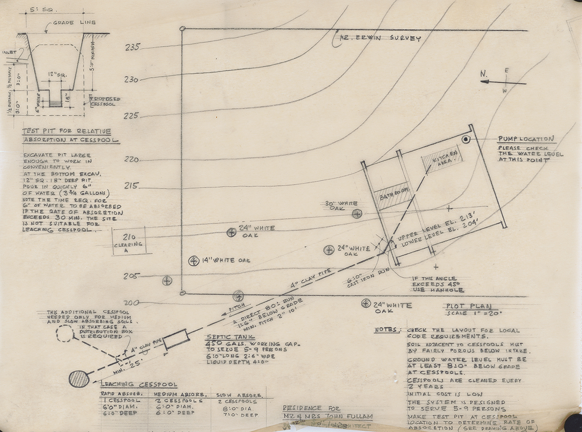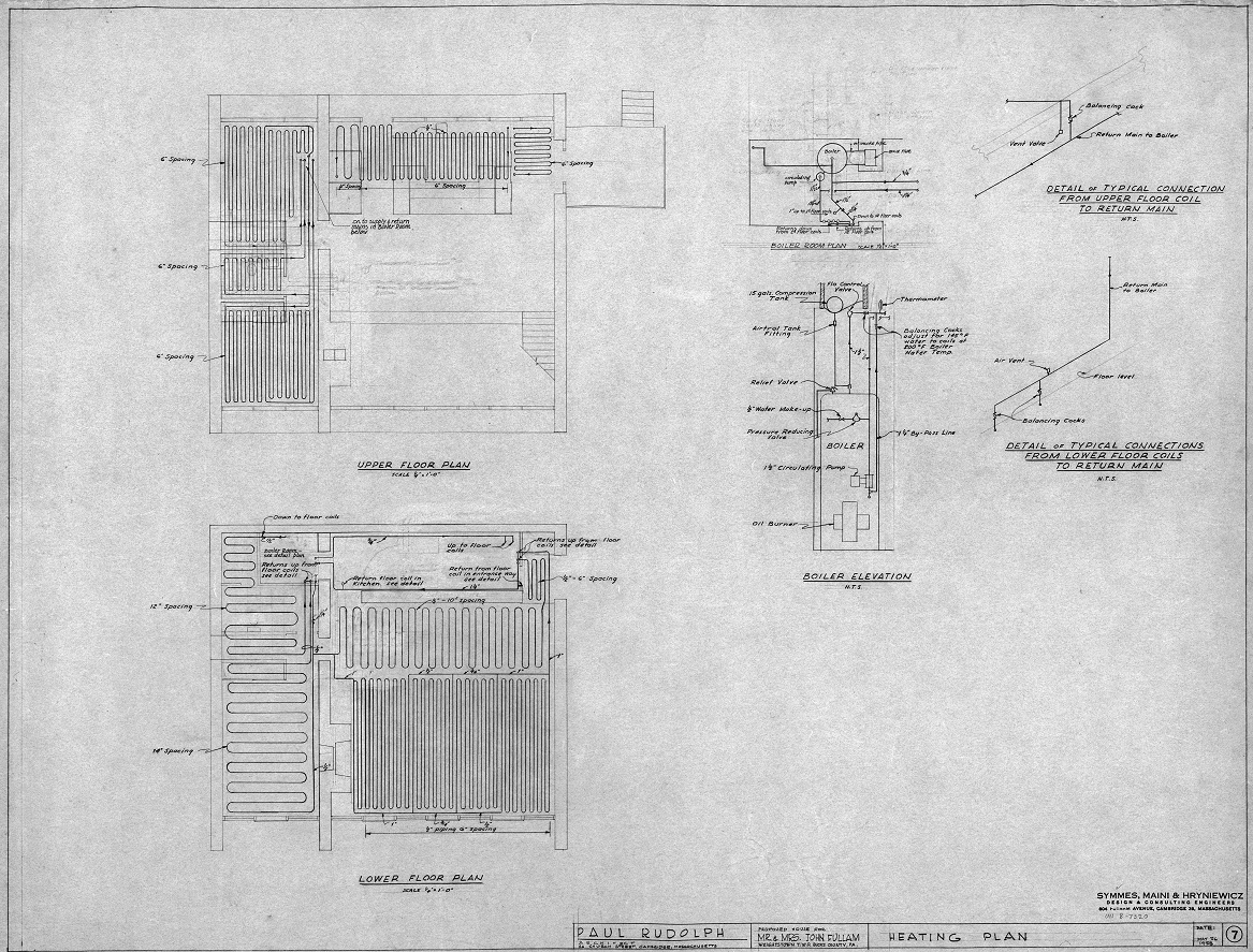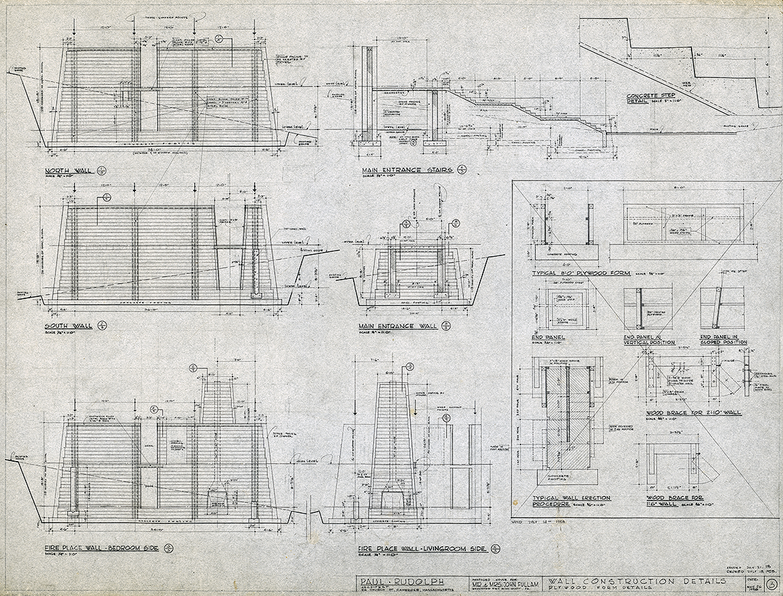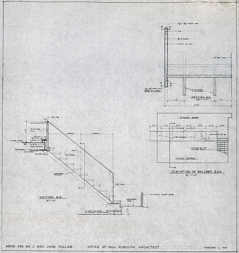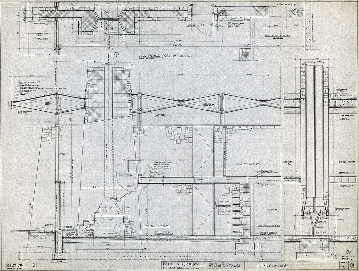 The project is to design a home for John P. Fullam and his wife Alice (Freiheit) Fullam. Having met in 1946, they are married in 1950. John Fullam meets Paul Rudolph while attending Harvard Law School and Alice was active in the arts at Radcliffe College while Rudolph is studying at the Harvard Graduate School of Design.