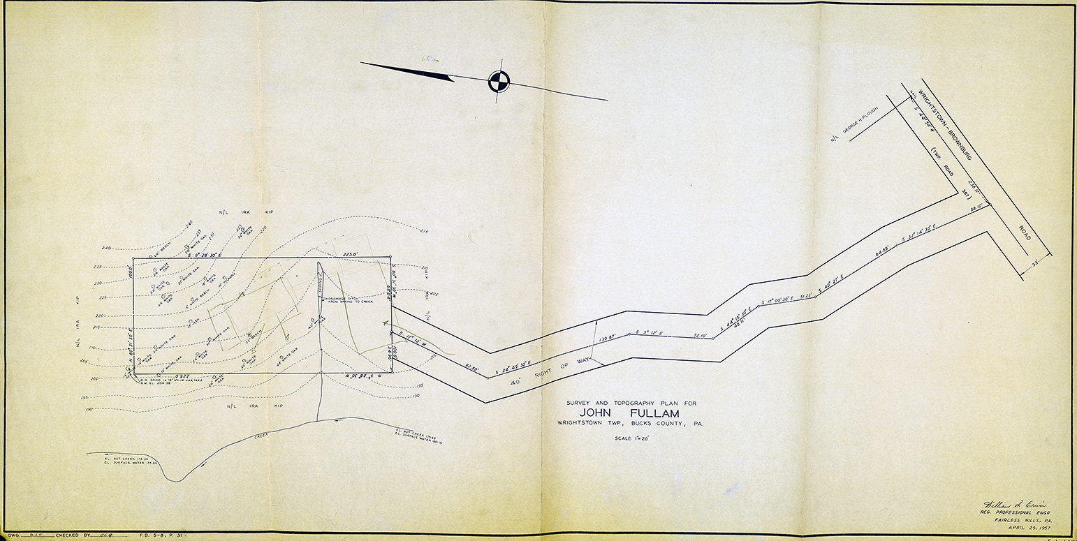 The Fullams invite Rudolph to visit them in Pennsylvania and Rudolph sends them a thank you letter on March 21, 1957. purchase the property around April 26, 1957. Ten years after meeting, the Fullams' commission Rudolph to design a modern home for them.