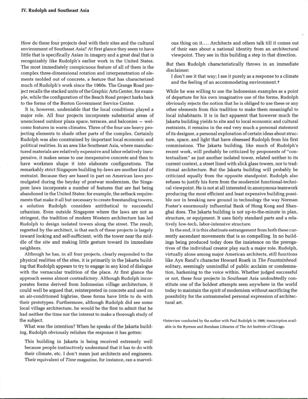 * lnterview conducted by the author with Paul Rudolph in 1986; transcription available in the Ryerson and Burnham Libraries of The Art Institute of Chicago.