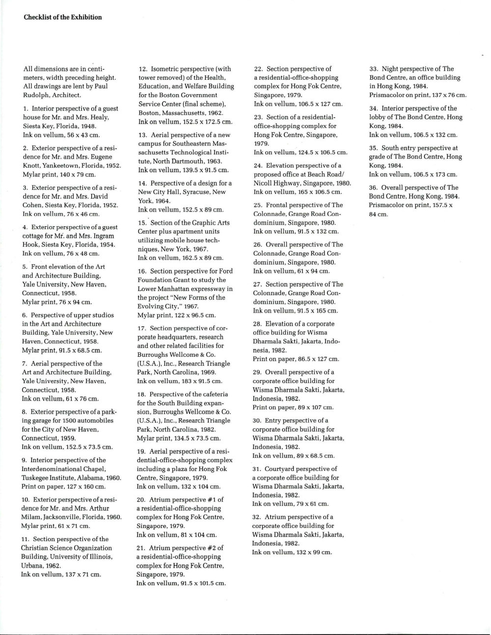 The publication also included drawings and photographs of Rudolph’s work, and a checklist of the exhibition. We are grateful to the Art Institute of Chicago and to Robert Bruegmann for permission to share it on the Paul Rudolph Heritage Foundation's website.