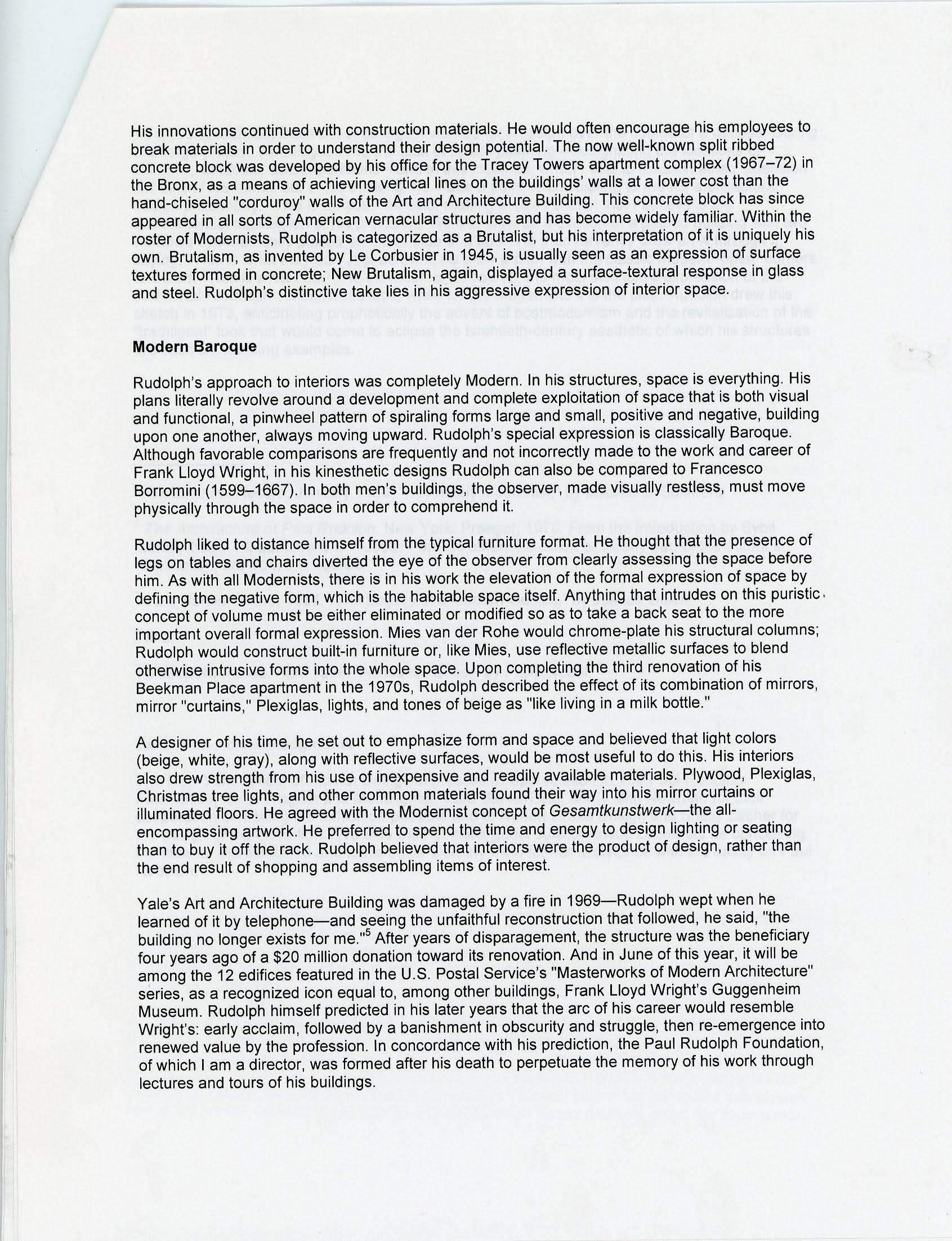 [2] The Architecture of Paul Rudolph. New York: Praeger, 1970. From the introduction by Sybil Moholy-Nagy. All quotations of Rudolph, unless otherwise noted or clearly part of the author's recollection are from this source.